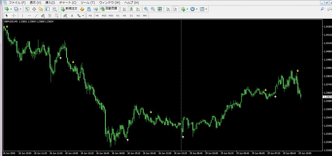 このように・・・ポンドドルの5分足です