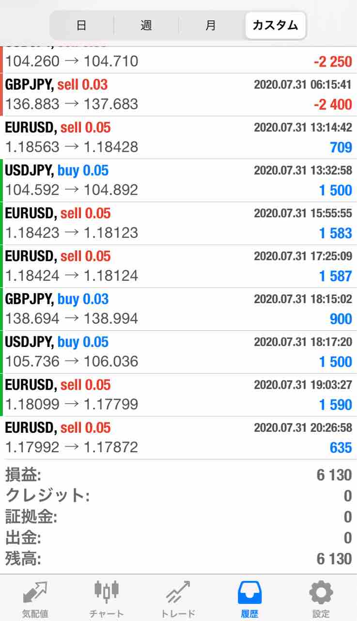 しかし結果が青色ばかりだと気持ちいいですね。ナンピンしている当時は赤の含み損の確認ばかりでしたから(^^;含み益を持つ時間が長くなるとプロのトレーダーになった気分です(^^♪