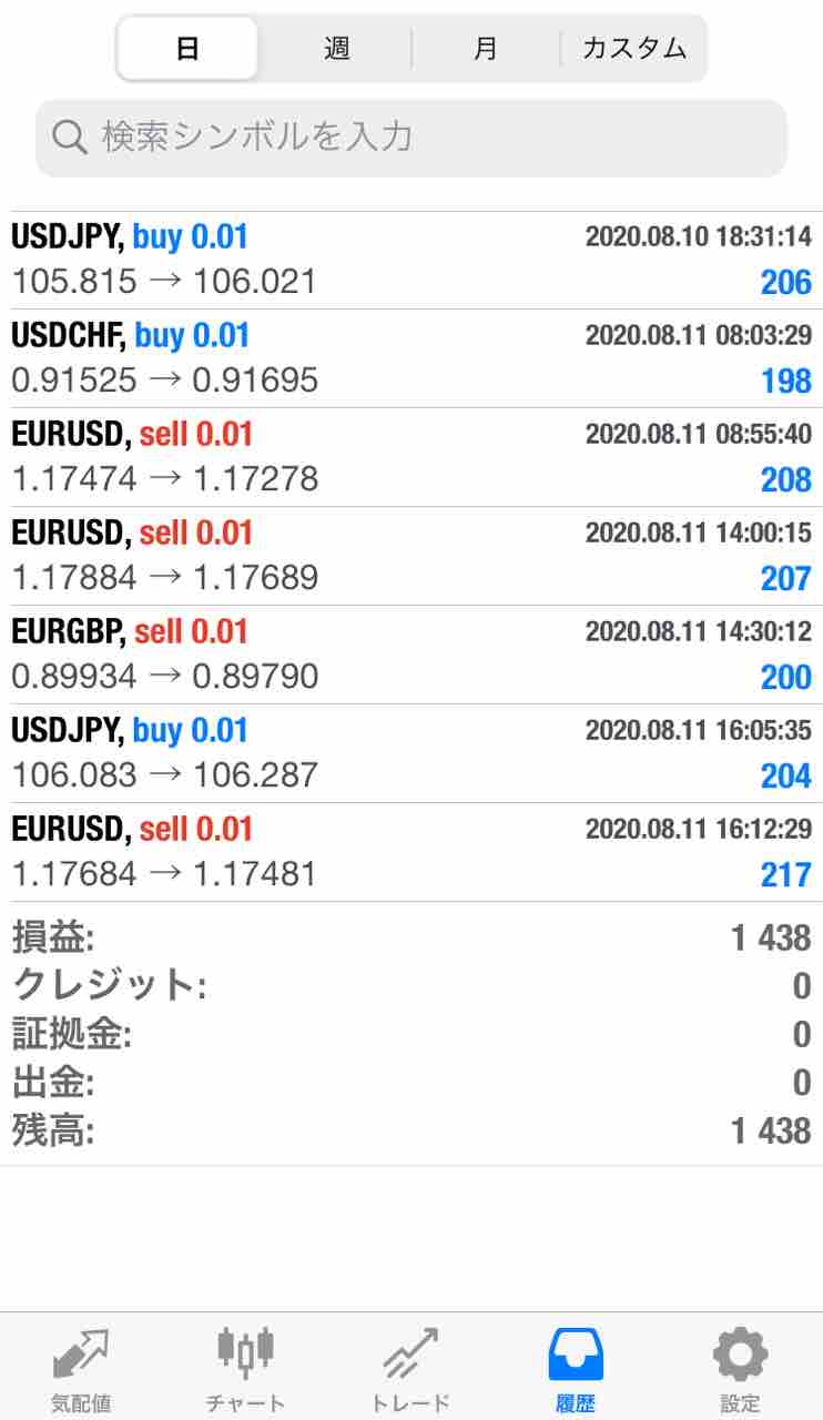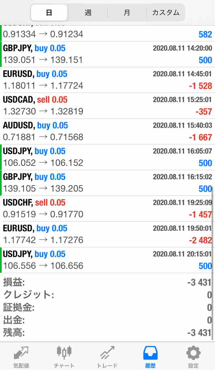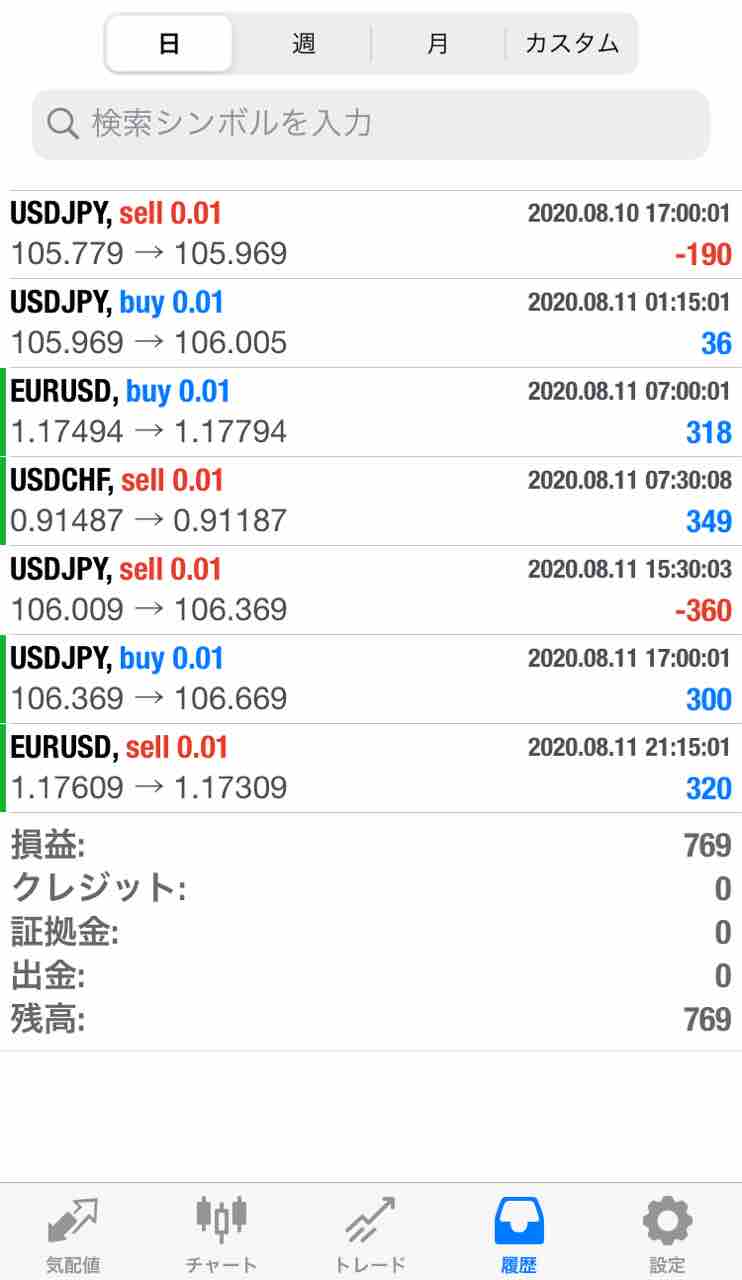 新しくGlow5を使った5分足A勝ち逃げ運用です。途中で設定を変更したため勝ち数がリセットされいくつか無駄な負けが増えてしまいました。本来は2勝で終わりです。