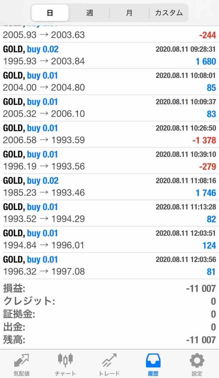 手動で損切りしたGlowEXのGoldです。損切りは痛いですがそれでも70,000円くらいの利益は残っています。そしてGoldは回収も速いです。破綻しなければまた取り戻せる運用です。